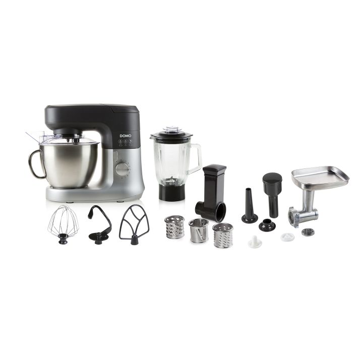 • Inklusive: Knethaken, Mixer, Schneebesen aus rostfreiem Edelstahl, Fleischwolf,