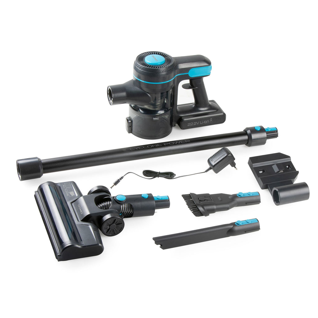 Der DOMO Stielstaubsauger DO1135SV macht Ihre Reinigung einfacher und effizienter. Mit leistungsstarkem 120-W-Zyklonsystem, 22,2-V-Li-Ion-Akku und bis zu 40 Minuten kabelloser Laufzeit bietet er eine gründliche und flexible Reinigung im ganzen Haus – ganz ohne Kabelsalat.