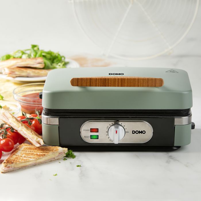 Mit seinem modernen Design in Sage Green und einem eleganten Holzoptik-Griff fügt sich der Snackmacher perfekt in jede Küche ein. Ob süsse Waffeln zum Frühstück, knusprige Croques zum Mittag oder gegrilltes Gemüse am Abend – dieses praktische Gerät eröffnet Ihnen zahlreiche kulinarische Möglichkeiten, die Sie und Ihre Gäste begeistern werden.