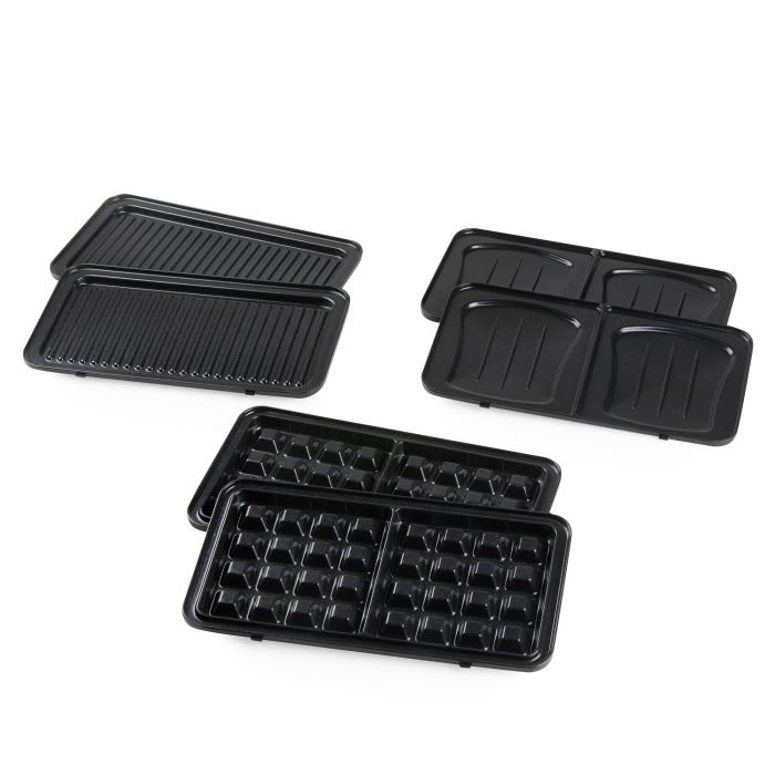 • Drei abnehmbare Backplatten: Croque, Waffel und Grill