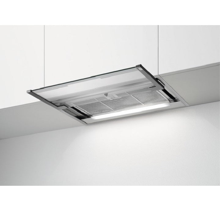 Das unverzichtbare Küchengerät brilliert mit elegantem Glas und integrierten Bedienelementen. Die Dunstabzugshaube von Electrolux hält die Küche frei von den unvermeidlichen Gerüchen, die beim Kochen entstehen. Wenn Sie die Dunstabzugshaube nicht mehr benötigen, können Sie sie einfach wieder zurückschieben und sparen somit an Platz für die Aufbewahrung von anderen Küchenutensilien. Das stilvolle Design dieser Haube erstreckt sich bis zum Bedienfeld aus Glas. Sie können es herausziehen, um die Lüftergeschwindigkeit zu ändern, oder Sie schieben es weg, wenn das Gerät nicht benutzt wird. Die Dunstabzugshaube ist ausserdem so konzipiert, dass der Motor des Geräts auch im Betrieb komplett verdeckt bleibt. Die energieeffizienten LEDs sind ideal für Bereiche, in denen die Beleuchtung häufig und auch mal länger eingeschaltet bleibt. Somit sind diese energieeffizienten Lämpchen der perfekte Weg die Kochfläche für eine bessere Sicht auszuleuchten. Mit einem jährlichen Energieverbrauch von nur 44.9 kWh und der Energieeffizienzklasse A ist die Dunstabzugshaube also auch noch sehr umweltfreundlich. Wenn Sie also auf der Suche nach einer Dunstabzugshaube mit einer hohen Drehzahleinstellung und einem leistungsstarken Motor sind und doch auf ein geniales Design nicht verzichten wollen, haben Sie mit diesem Modell von Electrolux die perfekte Lösung gefunden.