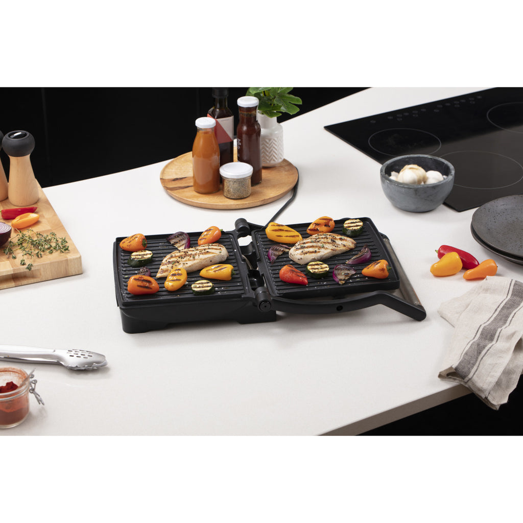 Als Paninigrill, Kontaktgrill oder aufgeklappt als Flächengrill einsetzbar, bietet der George Foreman Flexe Grill die Funktionen mehrerer Geräte in einem. Neben seiner Multifunktionalität überzeugt er mit einer ausserordentlich einfachen Reinigung, einer hochwertigen, langlebigen Antihaftbeschichtung und starken Grillleistung.