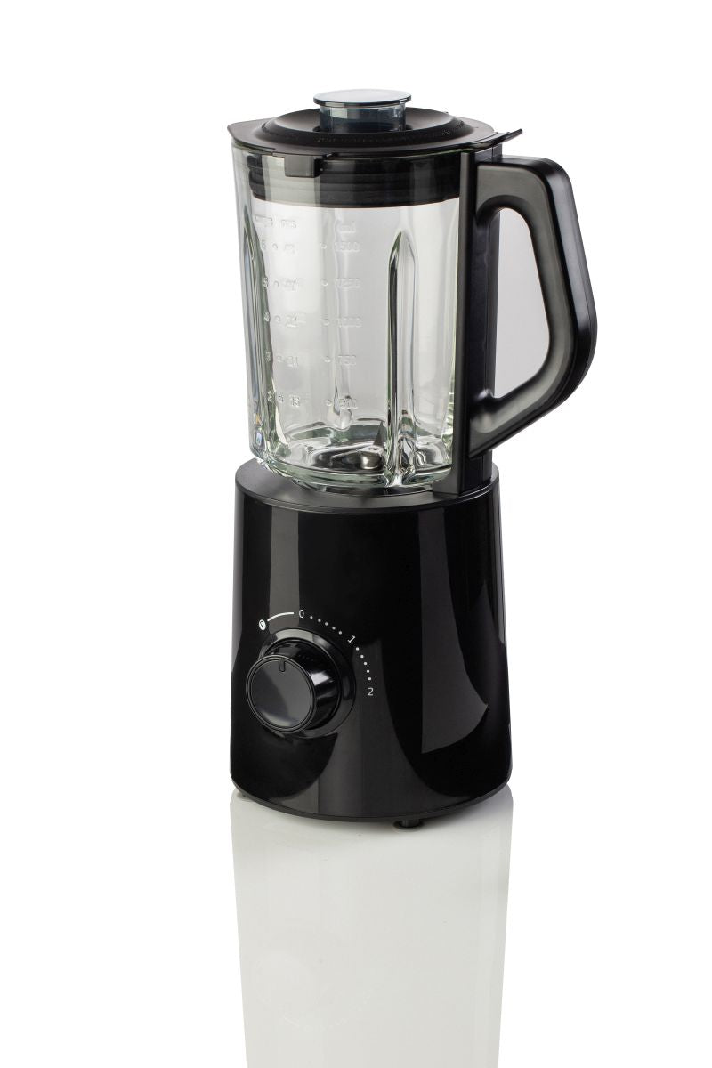 Standmixer:800 W Leistung17000 U/min1,5 L Glasbehälter2 Geschwindigkeitsstufeneffizientes 4-flügelige Edelstahl-MesserÖffnung im Deckel Sicherheitsverriegelungsfunktion