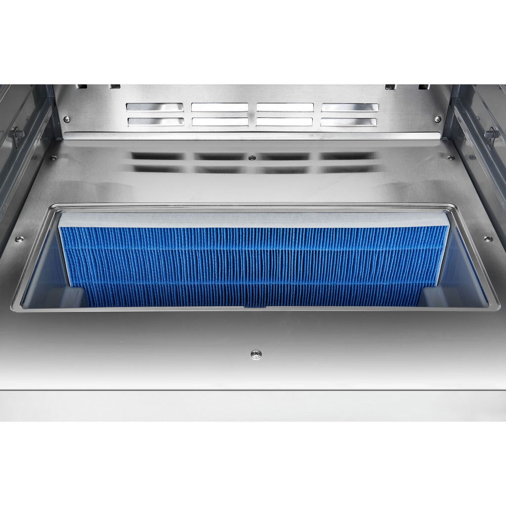 Das Gehäuse, der Türrahmen und der Türgriff bestehen aus hochwertigem Edelstahl AISI 304, was nicht nur eine robuste Konstruktion gewährleistet, sondern auch eine ästhetisch ansprechende Optik bietet. Die Tür besteht aus gehärtetem Low-E-Glas, das die Energieeffizienz verbessert und gleichzeitig das Schrankinnere vor externen Einflüssen schützt.