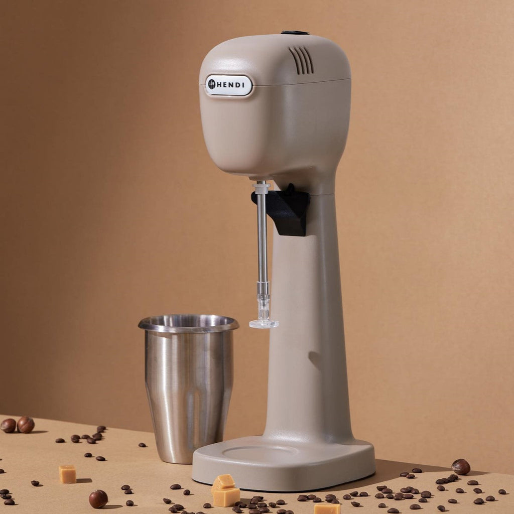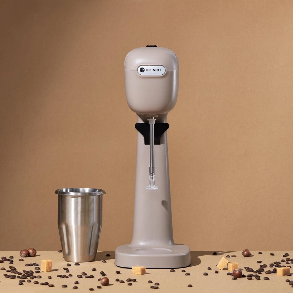 Vom niederländischen Designer Robert Bronwasser entworfen und in 6 attraktiven Farben erhältlich. Für die mühelose Zubereitung von Cappuccino Freddo, Frappés und natürlich Milchshakes. Das Gehäuse ist aus ABS-Kunststoff gefertigt. Der Sockel ist beschwert und mit Gummifüßen versehen, die für zusätzliche Stabilität sorgen. Der Motor verfügt über zwei Geschwindigkeitsstufen: 15.000 und 19.000 U/Min. Die Bedienelemente sind einfach zugänglich an der Oberseite des Geräts angebracht. Der Milchshake-Mixer ist mit einem Mikroschalter ausgestattet, der sicherstellt, dass das Gerät nur funktioniert, wenn der Becher richtig platziert ist. Wählen Sie zwischen zwei verschiedenen Rührwerken, um den Grad der Belüftung zu steuern. Komplettset inkl. einem Edelstahl-Mischbecher (0,95 Liter), einem Polykarbonat-Mischbecher (0,9 Liter) und 2 Sätzen zu je 2 Rührwerken. Becher und Rührwerke sind spülmaschinenfest.