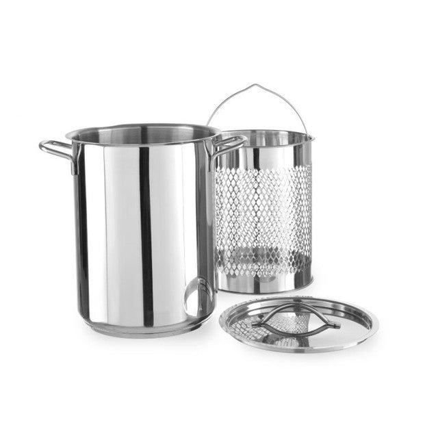 Der Spargel-Nudeltopf mit einem Fassungsvermögen von 5,5 Litern und einem Durchmesser von ø162x280mm von Hendi ist die ideale Lösung zum Dämpfen von langem Spargel und anderen langen Lebensmitteln. Dieses Set ist vielseitig einsetzbar und eignet sich auch zum Dämpfen von Gemüse, Fisch, zum Kochen von Pasta und zum Warmhalten von Hot Dogs.