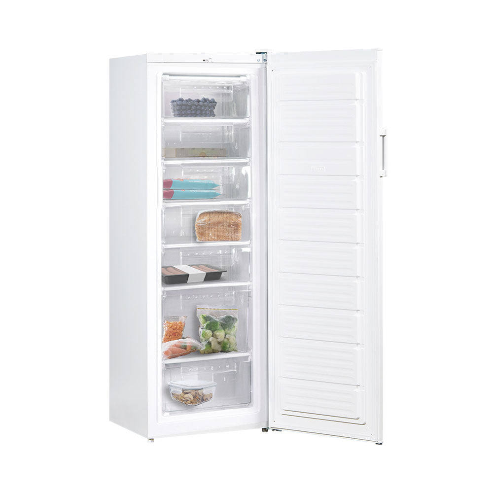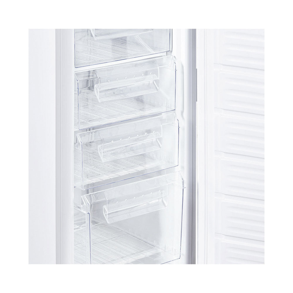 Der Kibernetik D9470245 Gefrierschrank bietet mit einem grossen Nutzinhalt von 242 Litern viel Platz zur langfristigen Lagerung von Tiefkühlprodukten. Sieben geräumige Schubladen ermöglichen eine übersichtliche Organisation und einen schnellen Zugriff auf den Inhalt. , Der niedrige Geräuschpegel von nur 40 dB(A) gewährleistet einen leisen Betrieb, ideal für Wohnbereiche., Die Lagerzeit bei Störungen beträgt bis zu 19 Stunden, sodass Lebensmittel auch bei einem Stromausfall sicher bleiben. Der wechselbare Türanschlag sorgt für flexible Platzierungsmöglichkeiten, während das umweltfreundliche Kältemittel R600a die Nachhaltigkeit unterstützt., Mit seinem modernen, weissen Design fügt sich dieser freistehende Gefrierschrank harmonisch in jede Küche ein und überzeugt mit durchdachter Funktionalität.