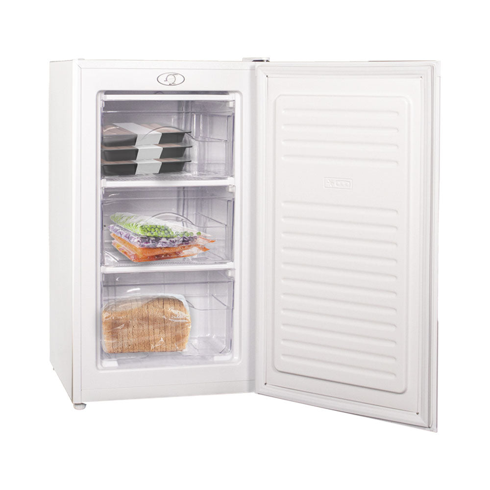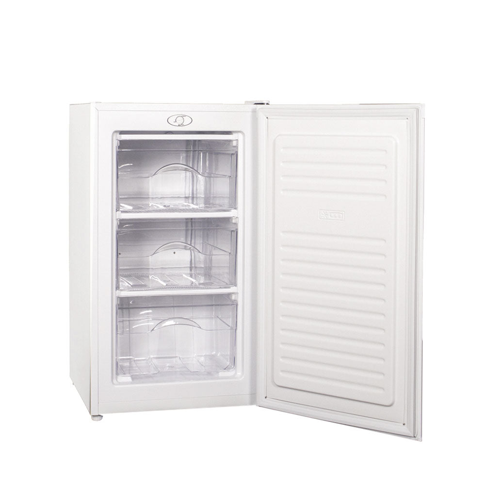Der kompakte, freistehende Kibernetik D947064 Gefrierschrank überzeugt mit einer Energieeffizienzklasse D und einem jährlichen Verbrauch von nur 126 kWh. Mit einem Gesamtnutzinhalt von 64 Litern bietet er ausreichend Platz für Tiefkühlwaren, verteilt auf drei geräumige Schubladen. Die effiziente Kühltechnologie ermöglicht eine Gefrierleistung von 3,2 kg in 24 Stunden bei einem Temperaturbereich von -14 bis -22 °C. Dank des leisen Betriebs mit nur 40 dB ist das Gerät ideal für Wohnräume. Die Lagerzeit bei Störungen beträgt bis zu 9,5 Stunden, was eine sichere Aufbewahrung der Lebensmittel gewährleistet. , Der Türanschlag ist wechselbar und ermöglicht eine flexible Platzierung. Mit dem umweltfreundlichen Kältemittel R600a und einer robusten Bauweise überzeugt dieser Gefrierschrank als praktische und effiziente Lösung für moderne Haushalte.