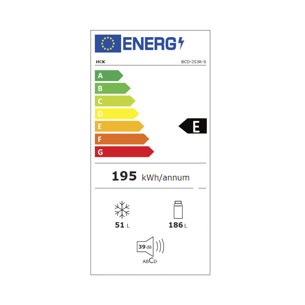 Anschlussspannung (V / Hz): 220 - 240 / 50, Ausstattung: 1x Eiswürfelbehälter / 1x Flaschengitter, Bauform: Freistehend, Energieeffizienzklasse: E, Energieverbrauch in 24 h (kWh): 0.54, Energieverbrauch in 365 Tagen (kWh): 195, Farbe: Beige, Garantie (Monate): 24, Gefrierfach integriert: Ja, Geräuschpegel (dB(A)): 39, Innenmasse Gefrierfach (H x B x T mm): 360 x 420 x 310, Innenmasse Kühlfach (H x B x T mm): 915 x 475 x 415, Kabellänge (m): 1.20, Kältemittel: R600a / 40g, Klimaklasse: ST / 18 - 38 °C, Lagerzeit bei Störung (h): 10, No Frost: Ja, Nutzinhalt Gefrierteil (l): 51, Nutzinhalt Kühlteil (l): 186, Nutzinhalt Total (l): 237, Sternenkennzeichen (Sterne): ****, Temperaturbereich (°C): -14 bis -24 / 2 bis 8, Türanschlag: Rechts (kann nicht geändert werden)