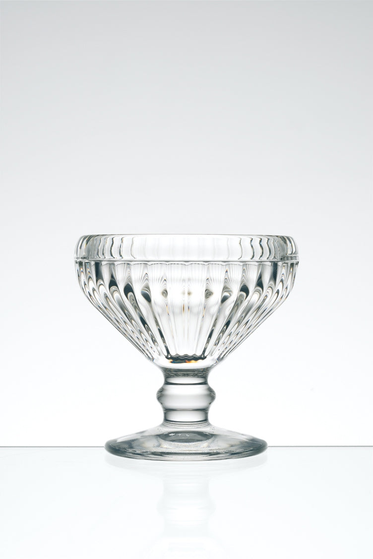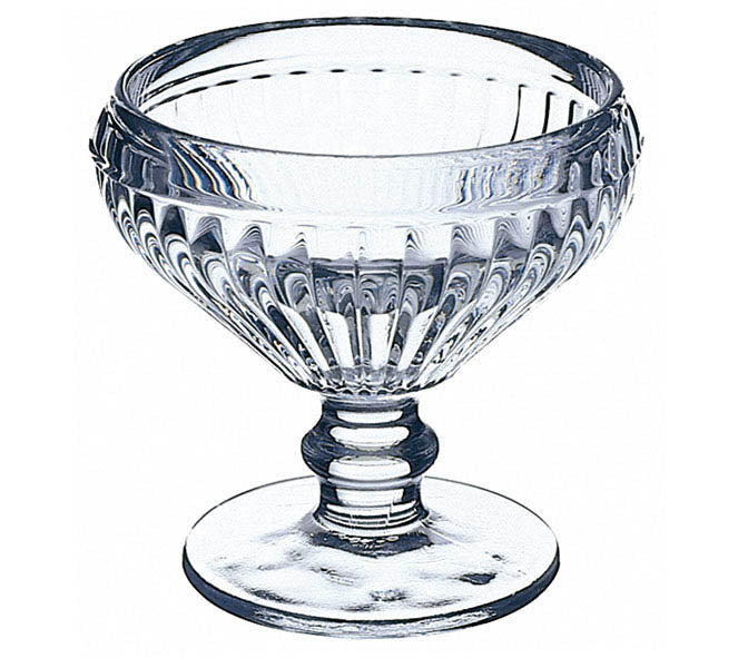 Der «CANARIES» Eisbecher ist eine sehr elegante Schale aus gepresstem Glas, die mit ihrer gerippten, Kegelartigen Form edle Schimmer ermöglicht, die dem Dessert Glanz geben. Sie ist ein Klassiker. Ausserdem ist gepresstes Glas sehr widerstandsfähig, und kann ohne Problem in der Spülmaschine gewaschen werden.Der CANARIES Eisbecher hat eine Höhe von 85 mm, einen Durchmesser von 90 mm, einen Inhalt von 13 cl, und ein Gewicht von 230 g. Es handelt sich um eine «hohe», durchsichtige Schale.Für eine optimale Pflege des Glases muss man starke Temperaturschocks vermeiden, wie zum Beispiel den direkten Übergang vom Kühlschrank in den heissen Ofen.