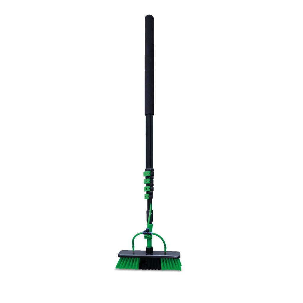 Dieses Multifunktions-Reinigungssystem kommt mit einem stufenlos verstellbaren Teleskop-Stiel aus hochwertigem Aluminium und einem sechs Meter langen Wasserschlauch, um auch schwer erreichbare Bereiche zu säubern.