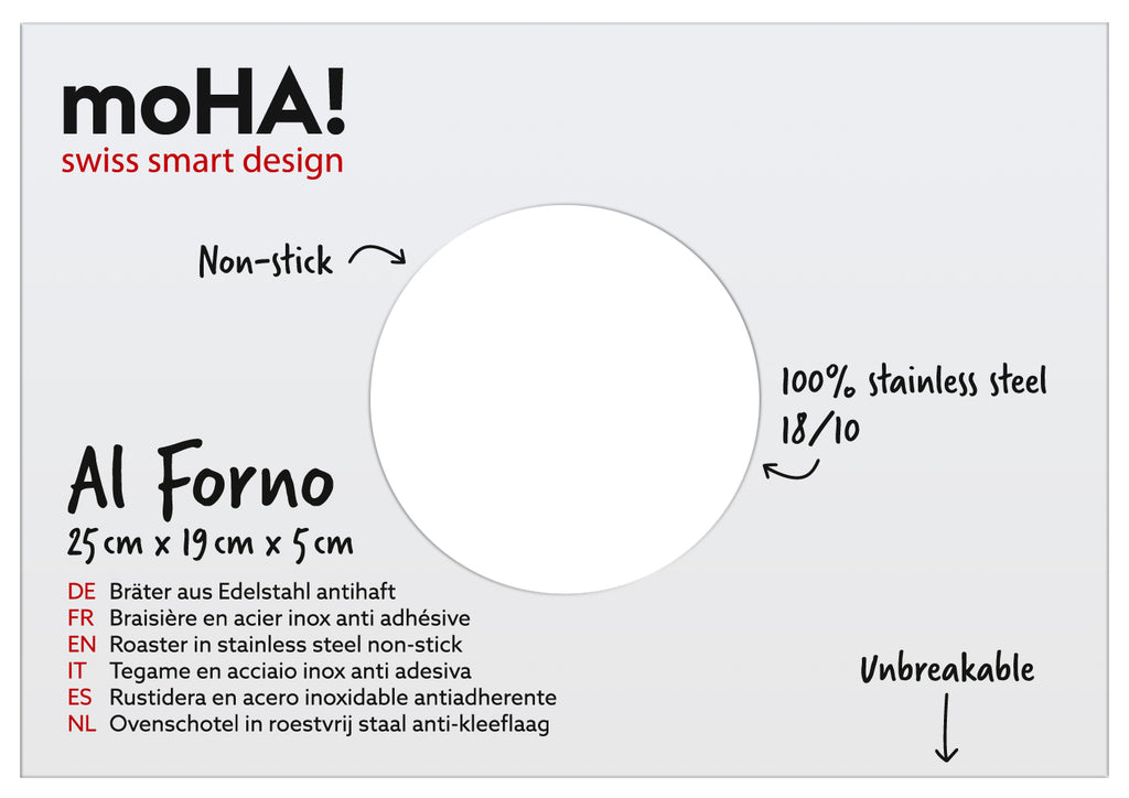 Aus hochwertigem Edelstahl 18/10 und ohne chemische Beschichtung gefertigt, wird diese Schmorpfanne Sie voll zufriedenstellen. Dank der revolutionären Wabenstruktur des Bodens kleben die Speisen auch bei hohen Temperaturen nicht an. Durch die gebogenen Ränder liegt der Schmortopf gut in der Hand, vor allem, wenn Sie ihn aus dem Ofen nehmen. Spülmaschinenfest.
