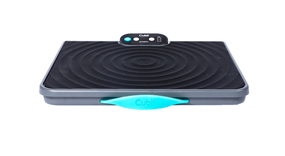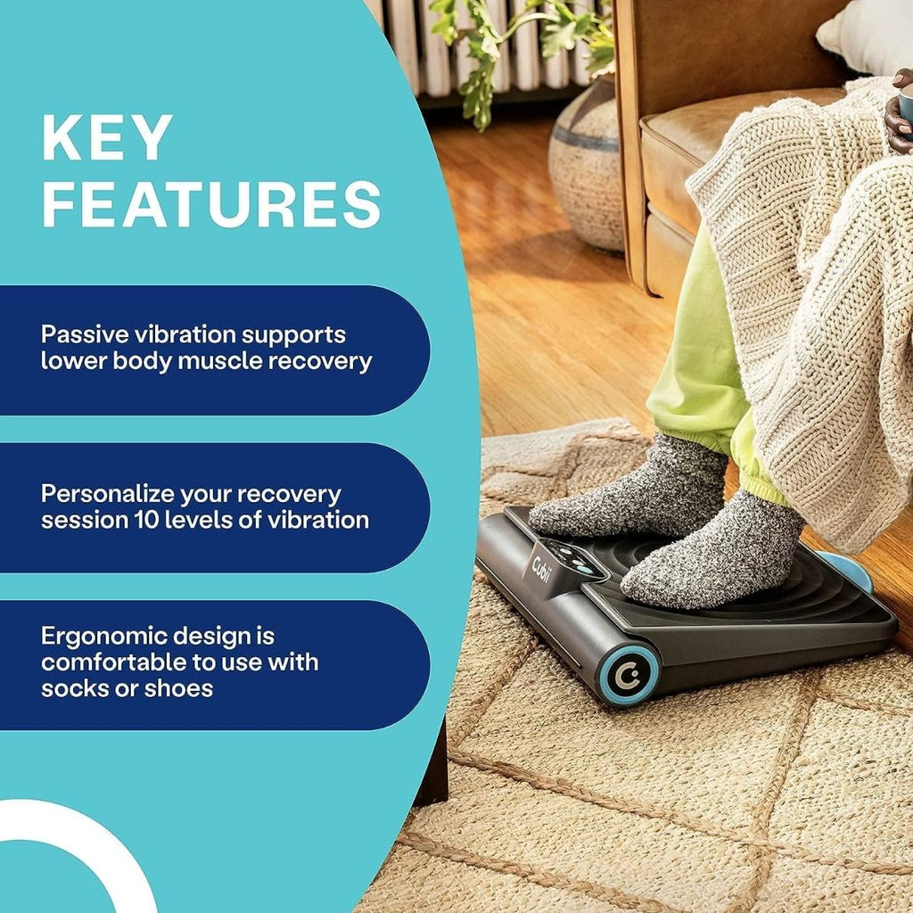 Entspannung und Regeneration für Beine und Füße – die Cubii Revive Sitz-Vibrationsplatte unterstützt die Durchblutung, Muskelentspannung und Erholung bequem im Sitzen.