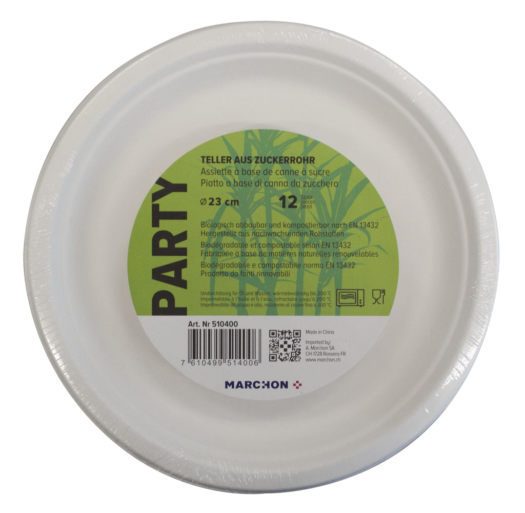 PARTY Teller rund 23 cm Zuckerrohr 12 Stück
