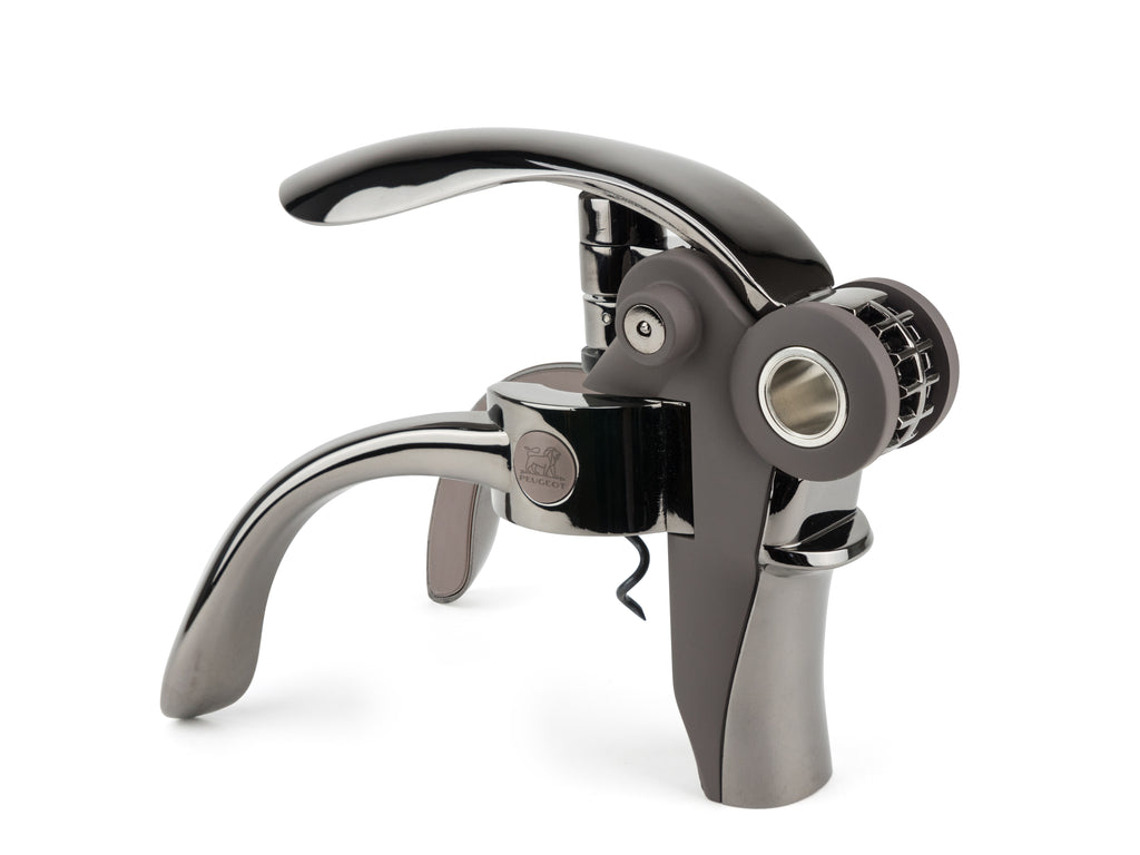 Die ganze Ingenieurskunst von Peugeot steckt in dieser Kreation mit äußerst präziser Mechanik. Der Hebelkorkenzieher „Baltaz“ ist mit Griffen ausgestattet, die die Flasche festhalten, um den Korken mühelos ziehen zu können. Die Ergonomie bietet eine perfekte Handlichkeit. Passend für alle Flaschenhälse und zusätzlich mit einem Kapselschneider ausgestattet. Das Modell Basalt besteht aus massivem Metall mit einem diskreten, basaltfarbigen Finish.Gebrauchsanweisung: Schneiden Sie zunächst die Kapsel mit dem Kapselschneider auf. Setzen Sie dann den Korkenzieher auf die Flasche, wobei Sie den Hebel zurückklappen, so dass sich die Metallschraube über der Flasche befindet. Halten Sie die Griffe fest, um den Korkenzieher zu stabilisieren. Klappen Sie den Hebel zu sich hin, so dass sich die Spindel in den Korken schraubt. Dann wiederholen Sie die Bewegung und klappen den Hebel nach hinten, um die Flasche mit einer einfachen Bewegung zu entkorken.