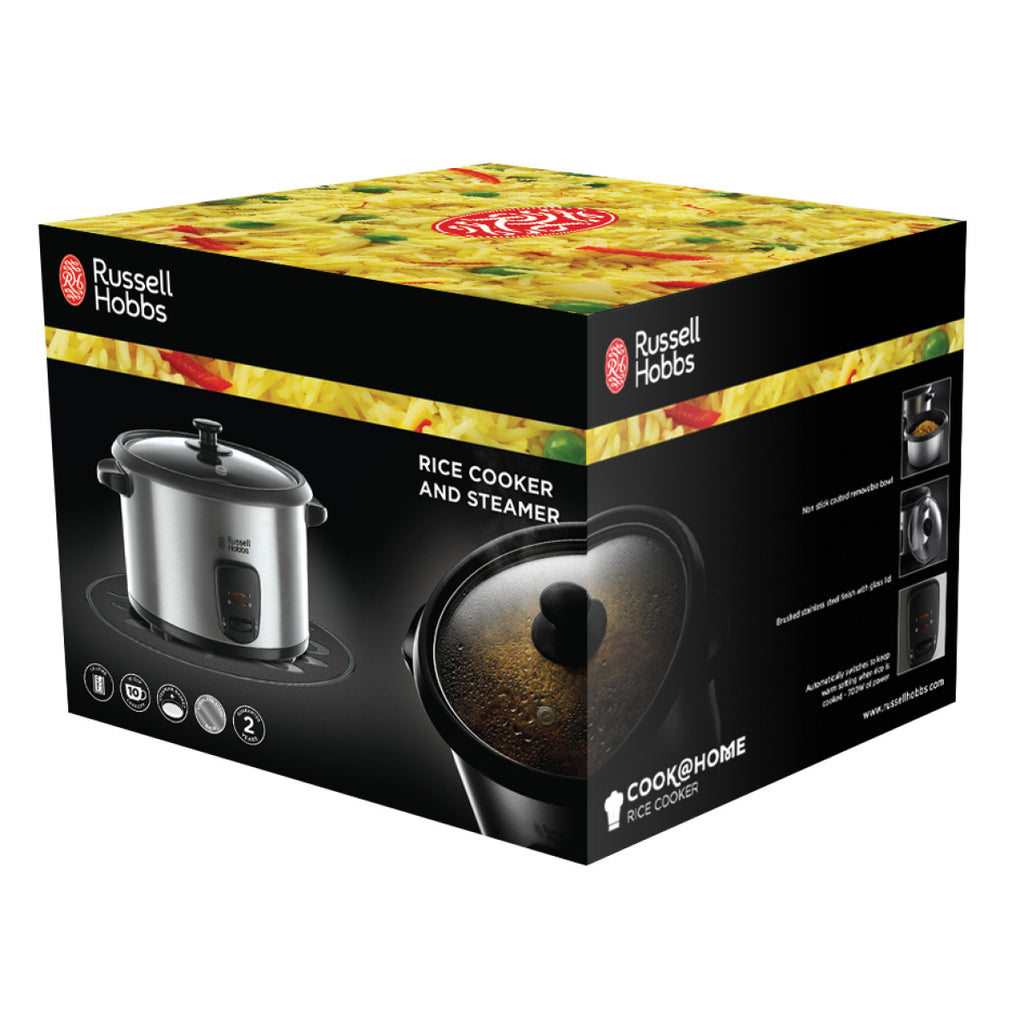 Die Küchengeräte der Cook@Home Serie zeichnen sich durch eine schnelle und mühelose Zubereitung von gesunden und schmackhaften Gerichten aus und garantieren somit Kochgenuss und spass für jedermann. Der elektrische Reiskocher der Cook@Home Serie von Russell Hobbs ist das ideale Küchengerät um ohne grossen Aufwand den perfekten Reis zu kochen - ganz ohne Ankleben, Vertrocknen oder Verkleben. Der Reiskocher zeichnet sich durch die Verwendung von langlebigen, pflegeleichten Materialien und einer praktische Ausstattung aus. Dank des zusätzlichen Dampfgareinsatzes kann auch Gemüse, Fleisch oder Fisch besonders schonenden zubereitet werden.