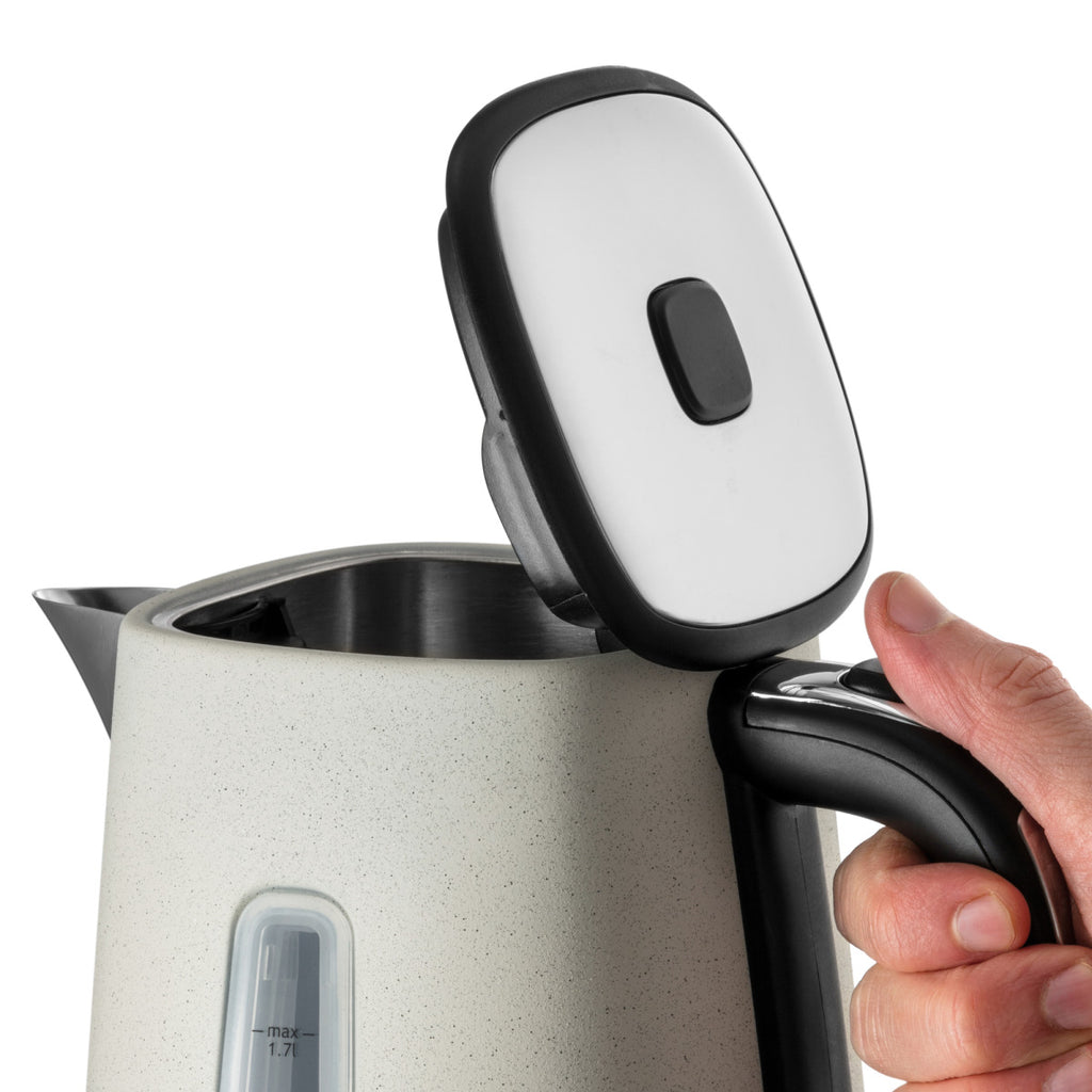 Ergänzen Sie Ihre Küche mit dem Luna Stone Wasserkocher, der mit seinem eleganten Edelstahl, der Aktivtralen Steinfarbe und der natürlichen Premium-Steinstruktur Ihrer Theke eine unaufdringliche Eleganz verleiht. Sein Fassungsvermögen von 1.7 l eignet sich perfekt für Kaffee oder Tee mit Freunden, so dass sich jeder wohlfühlen kann. Und das Beste daran: Mit der Schnellkochfunktion kochen Sie eine Tasse in 55 Sekunden und sparen bis zu 66 % Energie.