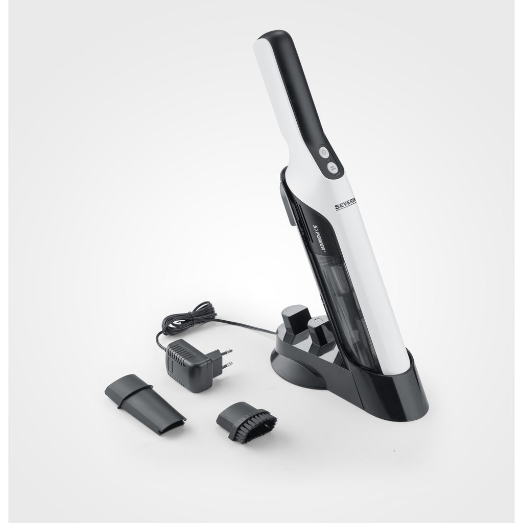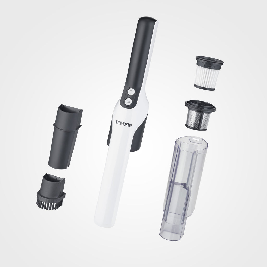 Der Severin HV7140 ist ein kabelloser Akku-Handstaubsauger, der mit seinem schlanken und leichten Design mühelos Tierhaare, Staub, Krümel und Asche entfernt. Selbst schwer erreichbare Stellen sind dank seiner kompakten Bauweise kein Problem mehr.