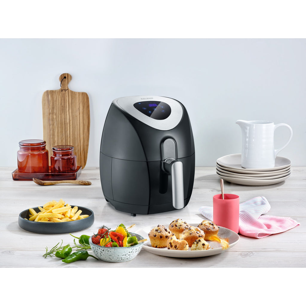 Das intuitive LCD Touch-Display macht die Bedienung der Heißluftfritteuse einfach und benutzerfreundlich. Der große 3,2 Liter Frittierkorb bietet ausreichend Platz für die Zubereitung von Gerichten für die ganze Familie. Darüber hinaus sorgt die geringe Geruchsentwicklung für ein angenehmes Kocherlebnis in Ihrer Küche.