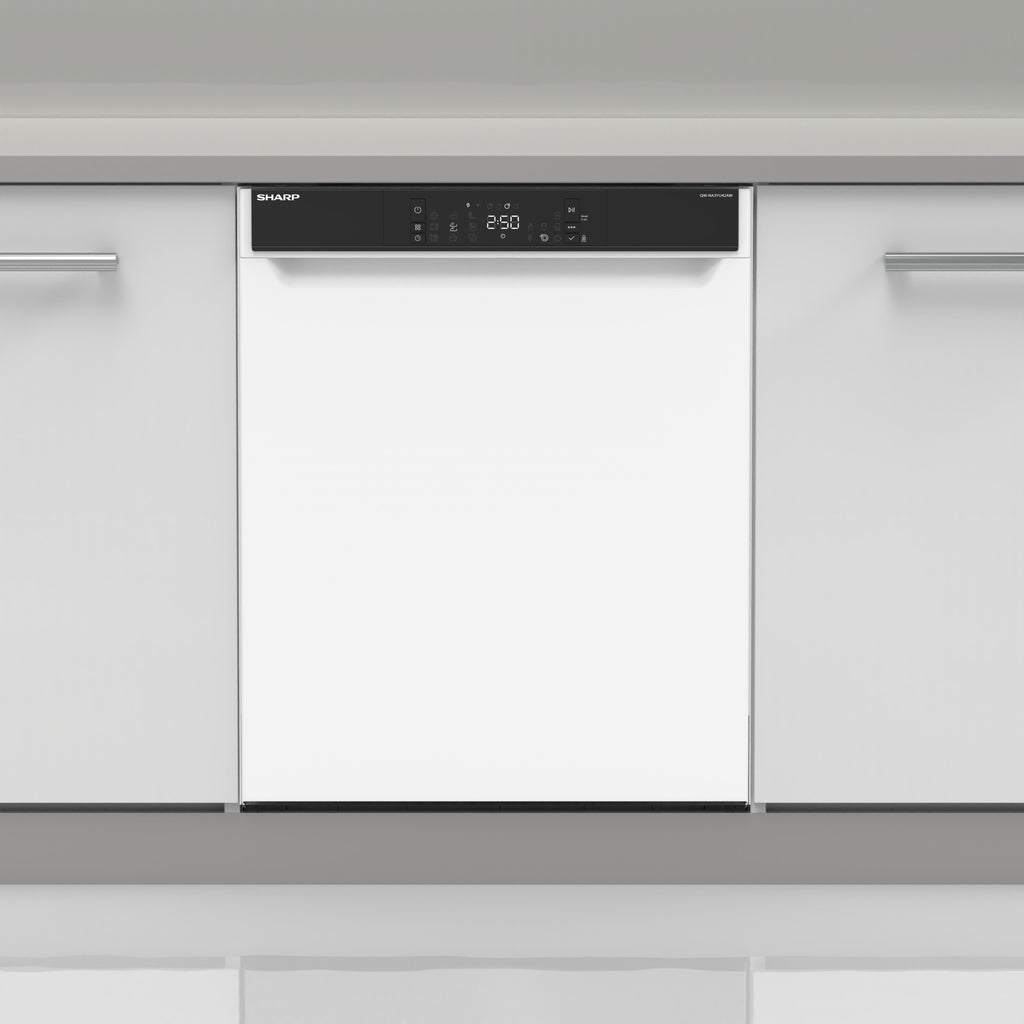 Der Unterbau-Geschirrspüler QW-NA3YU42AW von Sharp kombiniert effiziente Reinigungsleistung mit flexiblen Programmen für eine nahtlose Integration in moderne Küchen.