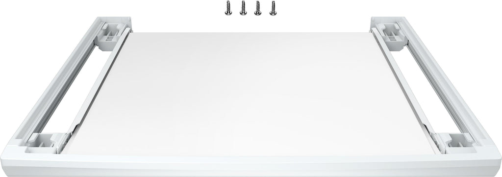 Verbindungssatz für Waschmaschinen und Wäschetrockner mit Auszug. Ermöglicht die Installation von Wäschetrocknern auf Waschmaschinen in voller Grösse (Tiefe >55cm) Verbindet die Geräte sicher, damit sie nicht verrutschen oder herunterfallen Mit praktischem Auszug zum Be- und Entladen. Abmessungen: 42 x 595 x 574 mm Bitte prüfen Sie vor der Bestellung die Kompatibilität mit Ihrem Gerät.;