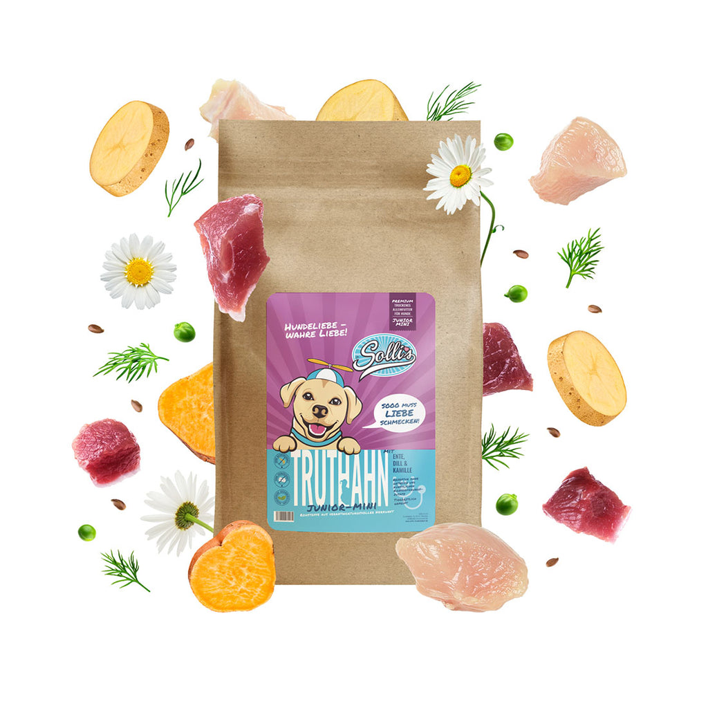 La "tacchino con anatra, patate dolci, aneto e camomilla" di Solli è un cibo secco premium soprattutto per i cuccioli di piccole razze. Combina la carne di tacchino e anatra di alta qualità con patate dolci, che rappresenta un'eccellente fonte di proteine. La composizione unica contiene anche proteine ​​di patate, piselli e chip di barbabietola imprecise, arricchiti con semi di lino, minerali e olio di pesce. Questo mangime è caratterizzato dall'aggiunta di camomilla e aneto, che garantisce un gusto speciale e promuove il benessere. Include anche importanti aggiunte come glucosamina, metilsolfonilmetano, condroitina solfato, fruttooligosaccaridi e manaligosaccaridi che contribuiscono al supporto di osso, salute articolare e intestinale. Sentirsi da additivi per cereali e zucchero, questo singolo mangime fornisce tutti i nutrienti essenziali per una crescita sana. Le composizioni sono state controllate e confermate in modo veterinario per garantire la massima qualità e sicurezza. L'attenta selezione e analisi degli ingredienti riflettono l'impegno per gli appalti responsabili delle materie prime e l'attenzione all'armonia del gusto, che ispira anche cuccioli esigenti.