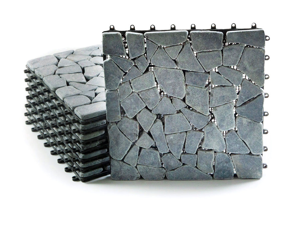 Alle Naturstein Fliesen sind mit WPC und Kunstrasen Fliesen kombinierbar.