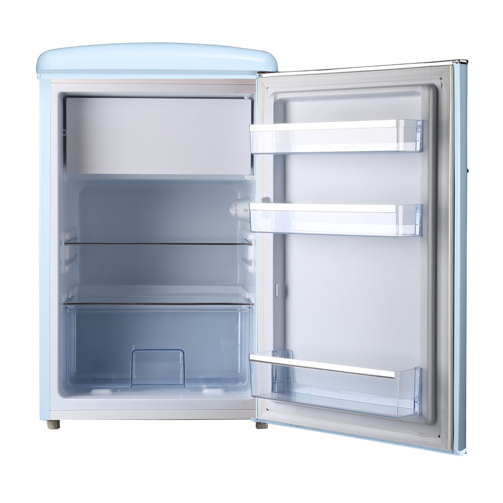 Der SPC Retro-Kühlschrank KS2777 überzeugt durch ein ansprechendes Retro-Design und praktische Funktionalität. Mit einem Nettovolumen von 108 L bietet er ausreichend Platz für Lebensmittel, das Kühlteil fasst 95 L und das 4-Sterne-Gefrierfach 13 L. Die mechanische Temperaturregelung erlaubt eine individuelle Einstellung von 1–10 °C im Kühlteil und ≤ -18 °C im Gefrierfach. LED-Beleuchtung sorgt für perfekte Übersicht, während drei Türfächer, zwei Regale und eine Gemüseschublade für optimale Organisation sorgen. Der Kühlschrank arbeitet mit einem geräuscharmen Geräuschpegel von 37 dB und verbraucht nur 87 kWh pro Jahr. Das umweltfreundliche Kältemittel R600a ist CFC-frei, die Stromversorgung erfolgt mit AC220-240 V/50 Hz. Mit kompakten Abmessungen von 55 × 61,5 × 89,5 cm findet er problemlos Platz in jeder Küche.