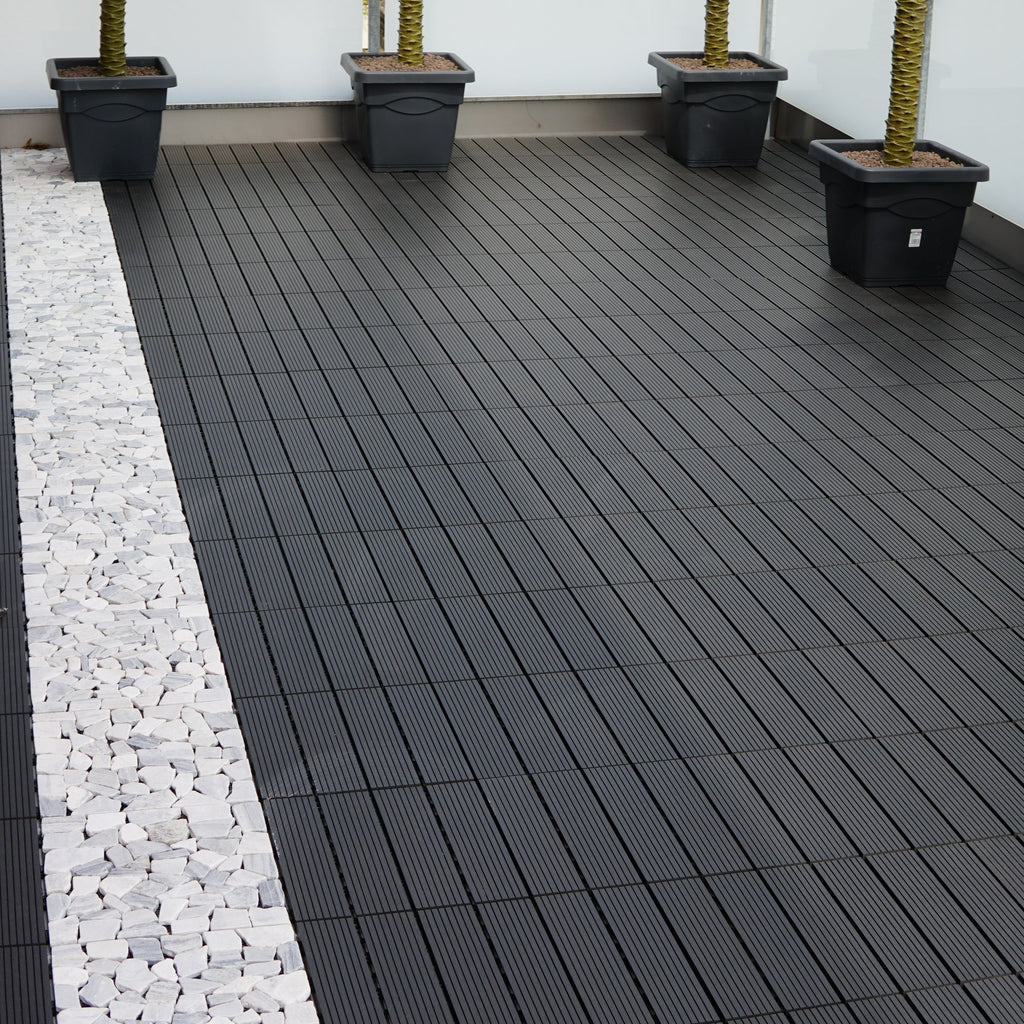 Tutte le piastrelle in pietra naturale possono essere combinate con piastrelle in WPC e in erba artificiale.