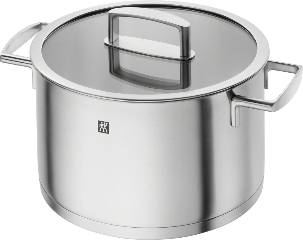 Mit ZWILLING Vitaliy Kochgeschirr wird fast jeder Wunsch nach einem hochqualitativen Kochgeschirr-Sortiment für Zuhause oder die Profi-Küche erfüllt. Hier glänzt der Edelstahl als Grundstoff und beschert allen ZWILLING Vitality Produkten die typischen und bewährten Materialeigenschaften: Die 18/10 Edelstahl Pfannen und Töpfe sind allesamt sehr robust und für häufige, intensive Nutzung gemacht. Eine Küche, die keinen Kochtopf hat? Wie soll das gehen? Schwer vorzustellen, deshalb kannst du deine Küche jetzt um den passenden Kochtopf ergänzen. Für dich, deine Küche und deinen Herd gibt es einen Topf, der genau die richtigen Größe für deinen Haushalt hat. Das Kochgeschirr aus der Serie Vitality ist wahrlich ein Highlight für dein kulinarisches Zuhause: Außerdem findest du in diesem Kochgeschirr mit einem Volumen von 6 l ausreichend Platz für die Speisen, die du in diesem Kochtopf zubereiten möchtest. Der Kochtopf besteht aus 18/10 Edelstahl. Hauptbestandteile sind Eisen, Chrom, das für die Korrosionsbeständigkeit des Materials sorgt, sowie Nickel, der für die Formbarkeit des Materials benötigt wird. Der Kochtopf ist ofenfest und daher besonders vielfältig einsetzbar. Du hast einen Induktionsherd? Kein Problem, dieses Kochgeschirr ist induktionsgeeignet. Der SIGMA Classic+ Boden des Kochtopfs ist ein mehrlagiger Sandwich-Boden. Sein Aluminiumkern speichert die aufgenommene Hitze, wodurch der Kochtopf lange heiß bleibt. Außerdem hat der Boden eine sehr gute Wärmeverteilung bis zur Seitenwand, und der Inhalt wird - auch, wenn du die Herdplatte herrunterdrehst - ausreichend mit Wärme versorgt. Lasse nach dem Kochen einfach die Spülmaschine den Abwasch übernehmen, denn dieser Kochtopf ist spülmaschinengeeignet.