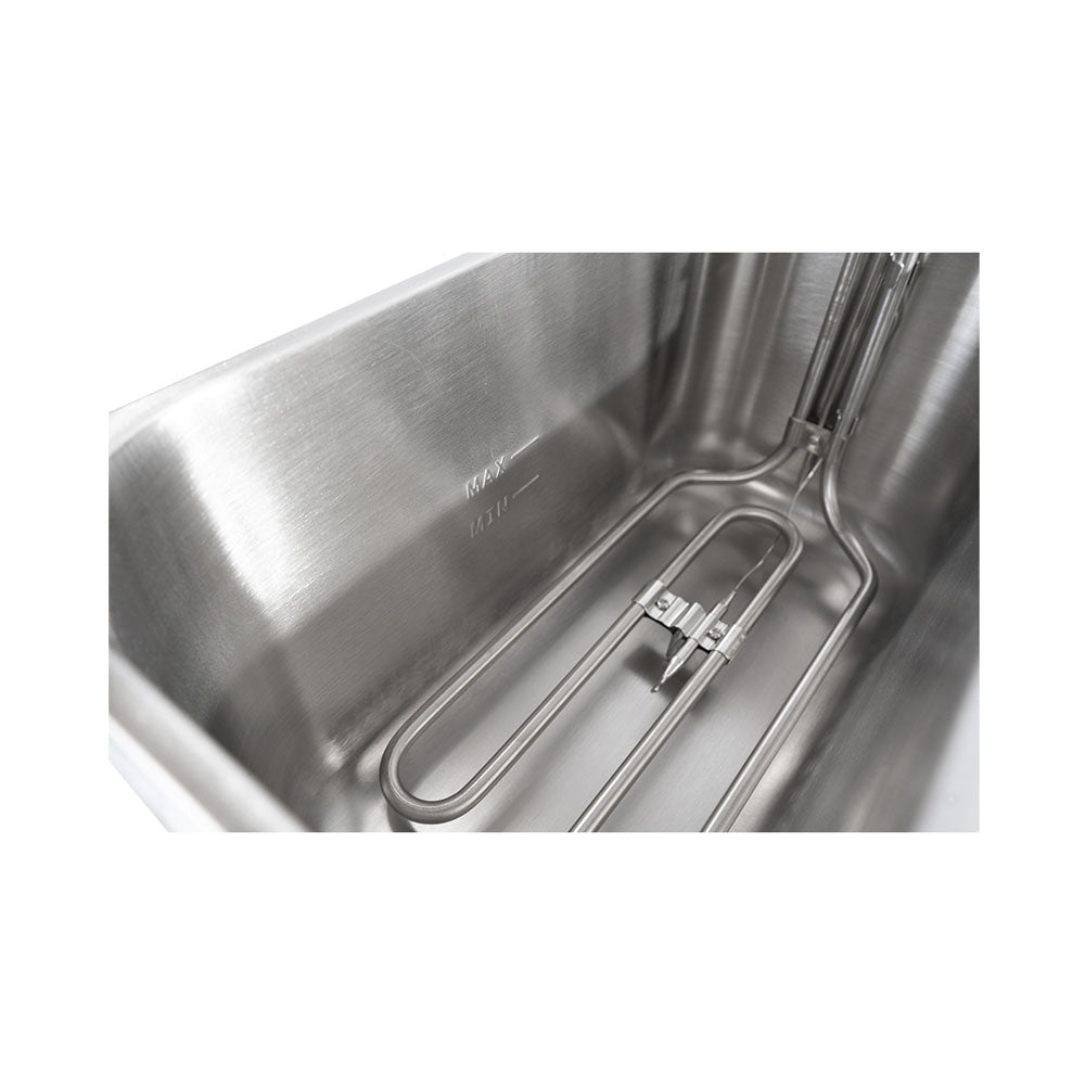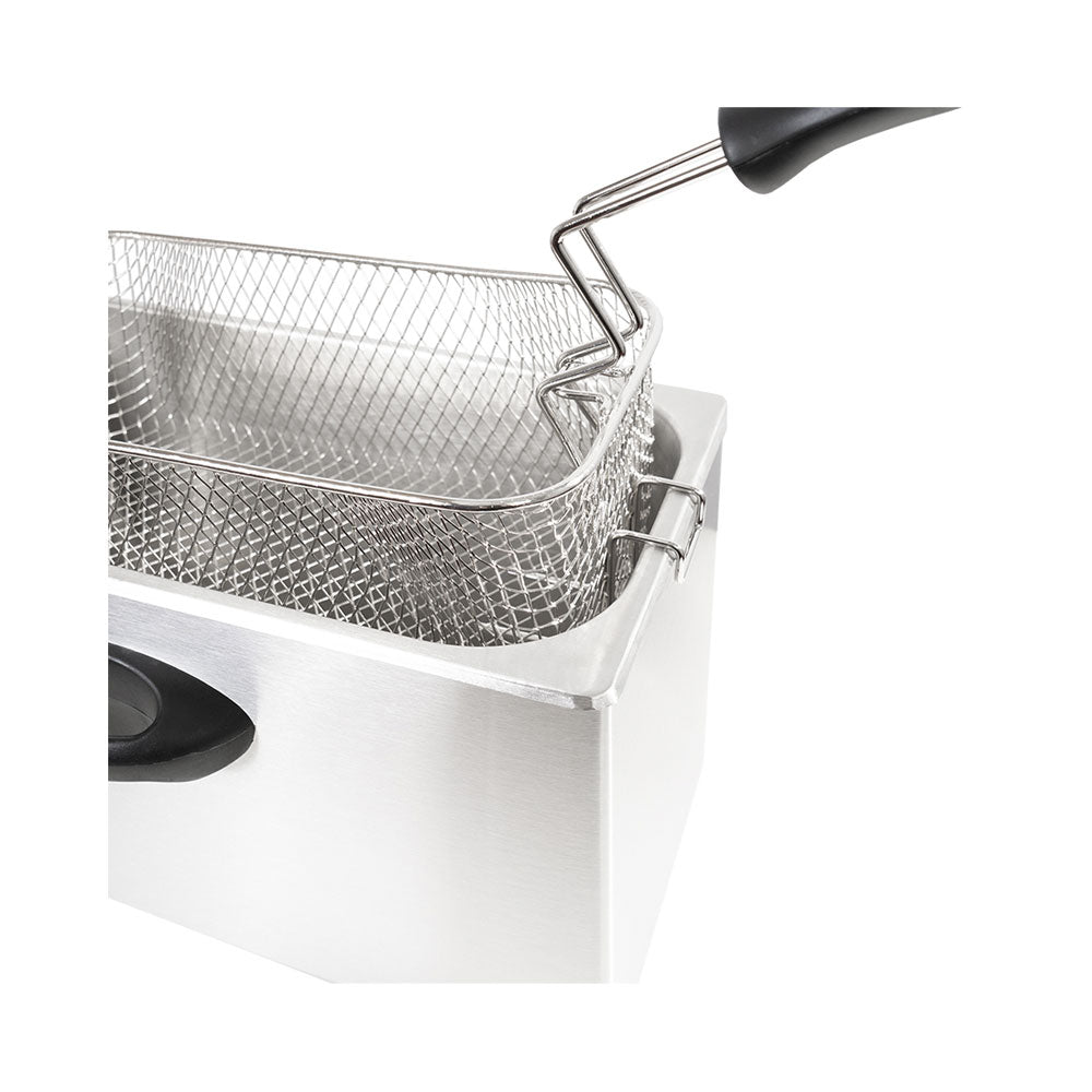 Die BergerLanz FT3-5L Fritteuse überzeugt durch ihre platzsparende Bauweise und leistungsstarke Funktionalität – ideal für den Einsatz in kleinen Gastronomiebetrieben, Imbissen oder Privathaushalten mit gehobenen Ansprüchen. Das Gerät fasst zwischen 3 und 5 Liter Öl und ermöglicht so die effiziente Zubereitung von Pommes frites, Snacks und weiteren frittierten Spezialitäten. Die Temperatur lässt sich stufenlos bis 200 °C regulieren und wird komfortabel über einen Drehschalter gesteuert. Zwei Kontrollleuchten informieren zuverlässig über den Betriebszustand. Für gleichmässige Hitzeverteilung sorgt das integrierte Heizelement. Das Gehäuse aus Edelstahl und Kunststoff kombiniert Robustheit mit pflegeleichter Handhabung. Mit einer Leistung von 2000 Watt bietet die Fritteuse eine zuverlässige Lösung für professionelle Frittierergebnisse auf kompakter Fläche.