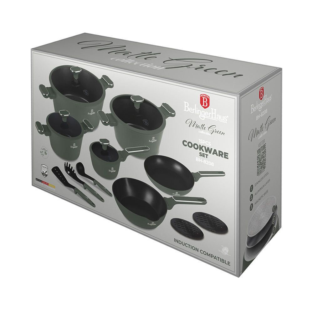 Berlinger Haus Küchenbedarf Haus 15-teiliges Kochgeschirr-Set Matte Green Collection