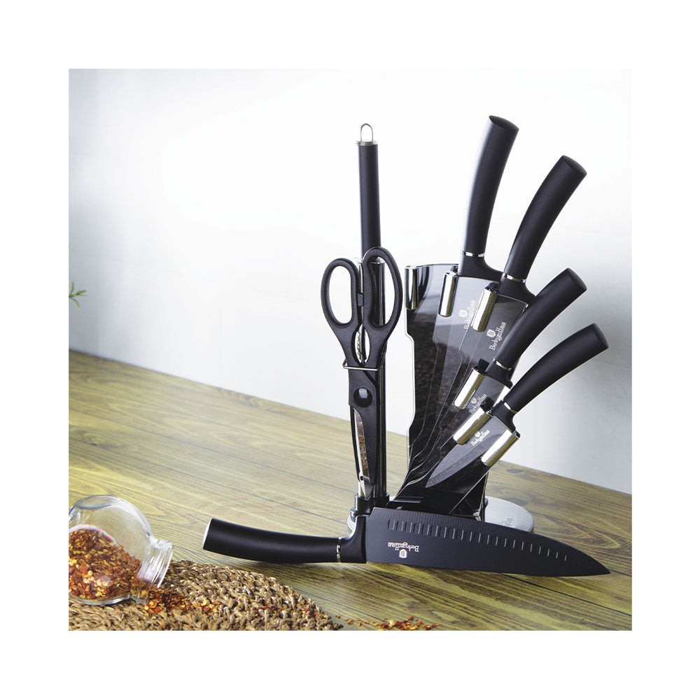 Berlinger Haus Küchenbedarf Haus 8-teiliges Messerset mit Acryl-Block Black Silver Collection