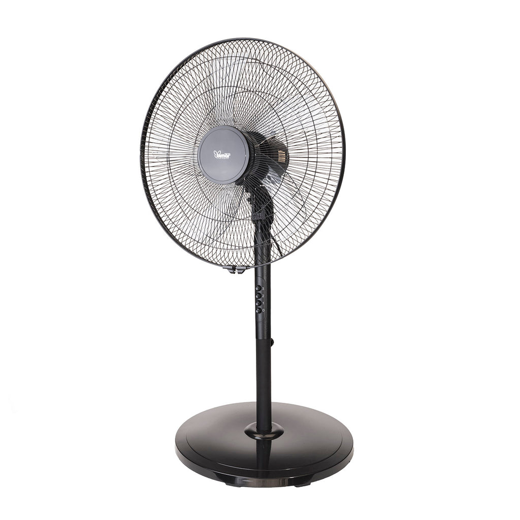 Der Standventilator VP165 von Bimar ist die ideale Lösung für eine effektive Kühlung an warmen Tagen. Mit seinem Durchmesser von 45cm sorgt er für eine großflächige Luftzirkulation im Raum. Sie können die Intensität und Richtung des Luftstroms ganz nach Ihren Bedürfnissen regulieren. Die abnehmbare Stützsäule ermöglicht eine individuelle Anpassung der Höhe bis zu maximal 165cm. Dank des Wahlschalters können Sie zwischen 0, Min, Med und Max Geschwindigkeitsstufen wählen, um die gewünschte Kühlleistung zu erzielen. Der Propeller mit einem Durchmesser von 44cm und 5 Flügeln gewährleistet einen leistungsstarken Luftstrom. Die automatische Schwenkfunktion nach rechts/links sorgt für eine gleichmäßige Verteilung der Luft im Raum. Die Einstellbarkeit der Neigung ermöglicht eine individuelle Ausrichtung des Luftstroms. Der Standventilator ist mit einer robusten Metallsäule und einem stabilen Schutzgitter ausgestattet, die für eine lange Lebensdauer sorgen. Der Kunststoffsockel mit Gegengewicht gewährleistet einen sicheren Stand des Ventilators. Dank seiner Eignung für tropische Klimazonen bietet der VP165 auch an heißen Tagen eine angenehme Erfrischung. Die Stromversorgung erfolgt mit 220-240V~ bei 50/60Hz und 60W Leistung.