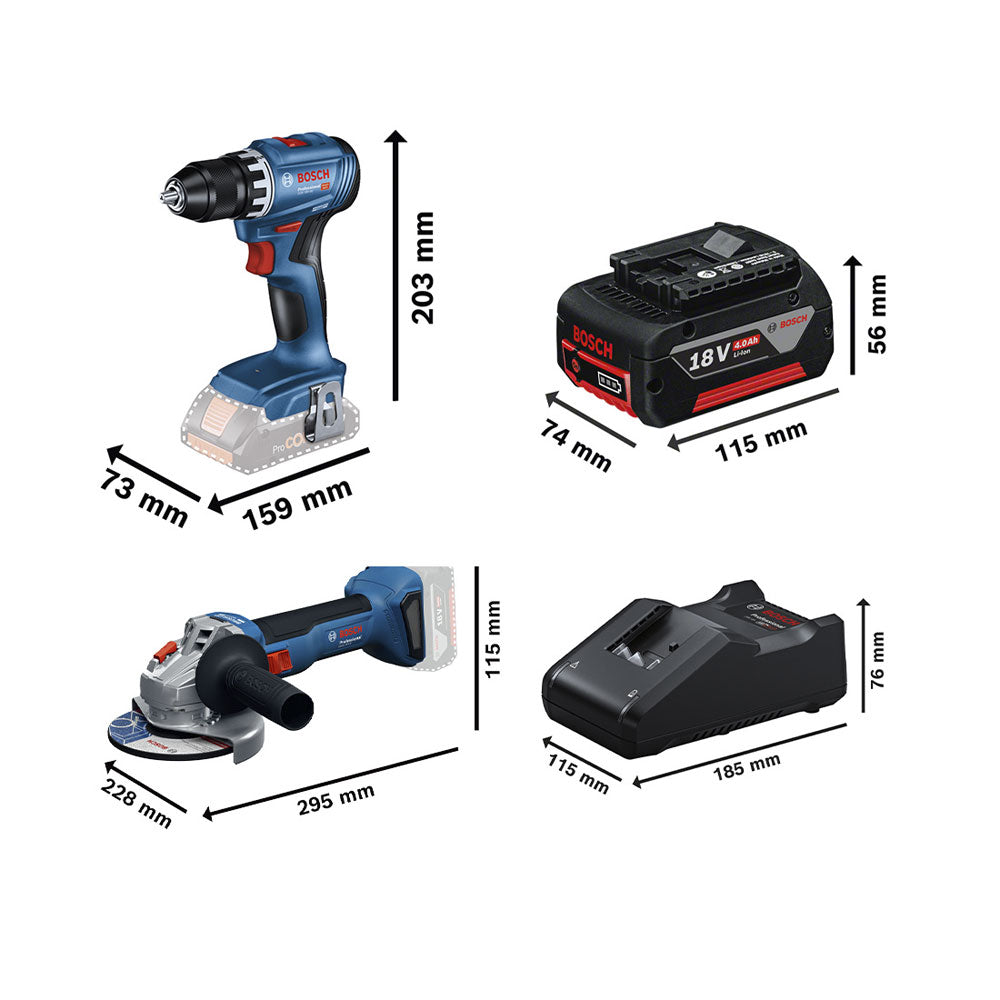 BOSCH Baugeräte 2 Tool Kit 18V GSR+GWS+2x4.0Ah+GAL 0.615.A50.07N