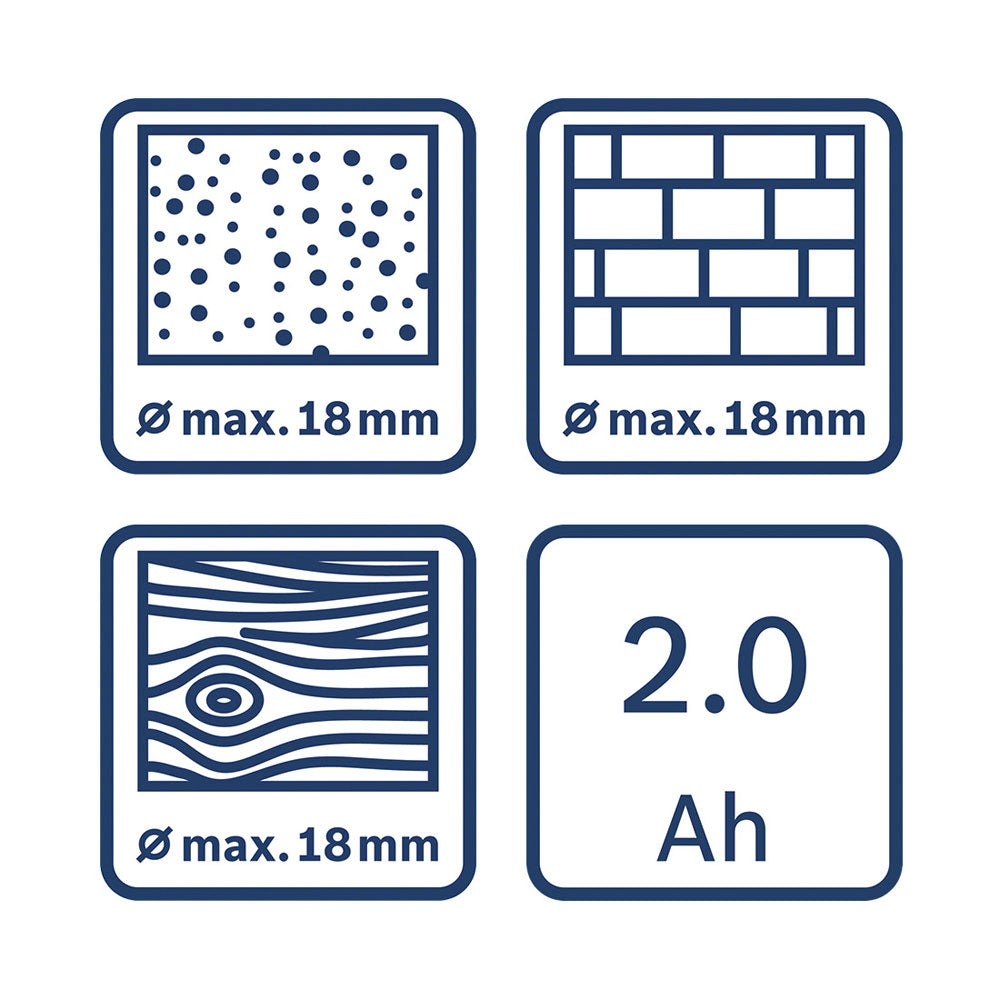 • Bohr-Ø in Beton mit Hammerbohrer: 4 – 18 mm