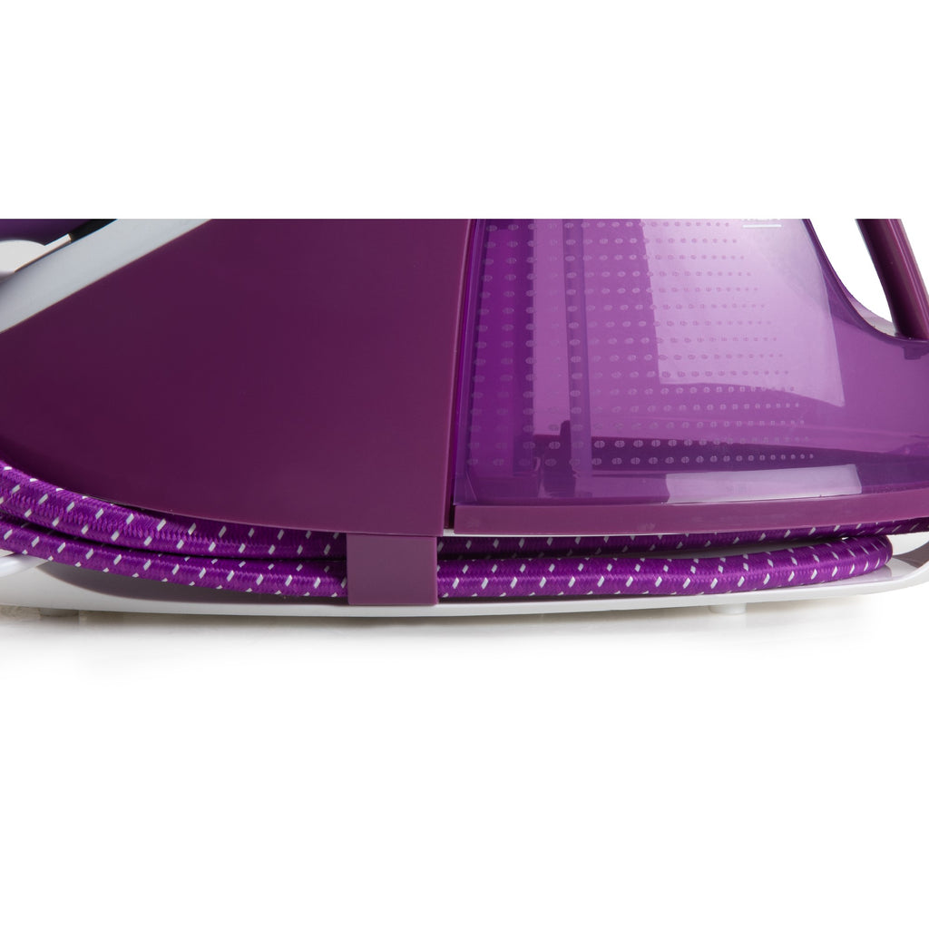 • Keramische Bügelsohle: Die hochwertige, langlebige Bügelsohle aus Keramik sorgt für ein reibungsloses Gleiten über die Wäsche.