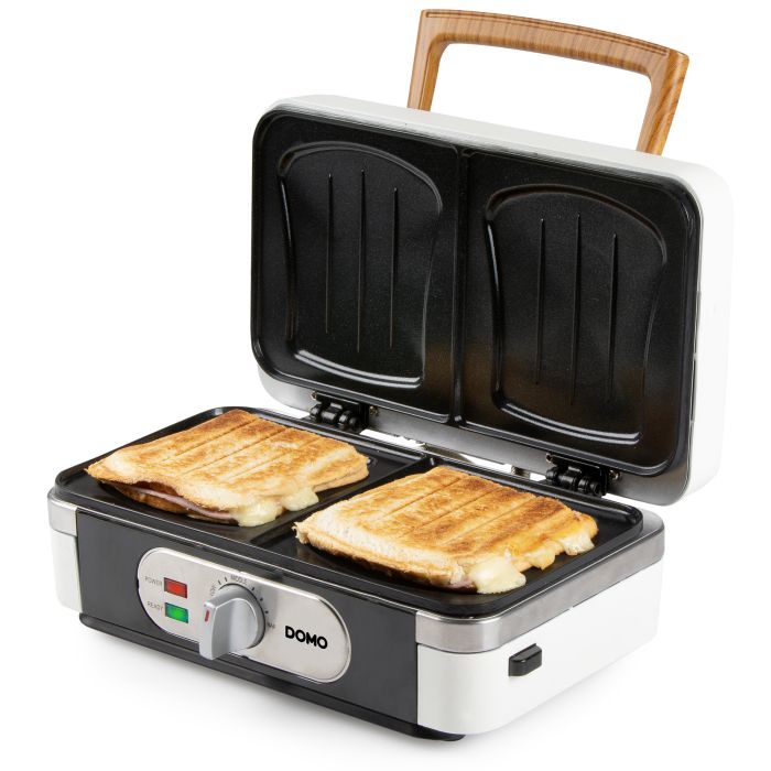 Der Snackmacher DO9277C von DOMO begeistert durch seine Vielseitigkeit und sein stilvolles Design in Powder White mit edlem Griff in Holzoptik. Ob herzhafte Croques, knusprige Waffeln oder gegrillte Köstlichkeiten – dieses 3-in-1-Gerät ist die perfekte Lösung für kreative Snackideen zu jeder Tageszeit.
