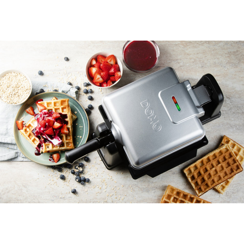 Mit dem DO9272W Waffeleisen von Domo gelingt jede Waffel perfekt – ob klassisch mit Puderzucker oder kreativ mit Früchten und Schokolade. Die rotierende Funktion sorgt für eine gleichmässige Teigverteilung und ein optimales Backergebnis. Dank Antihaftbeschichtung lassen sich die Waffeln mühelos entnehmen, während das Cool-Touch-Design für eine sichere Bedienung sorgt. Die Kontrolllämpchen zeigen an, wann das Gerät betriebsbereit ist, und nach Gebrauch lässt es sich platzsparend verstauen.