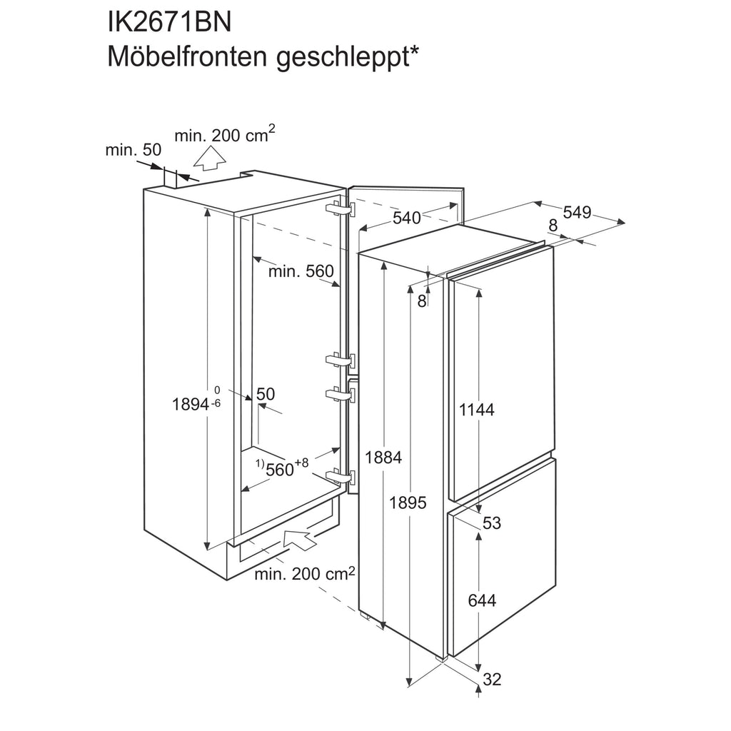 Electrolux Einbaukühlschrank IK2671BNR, Schlepptür, NoFrost, 188.4cm