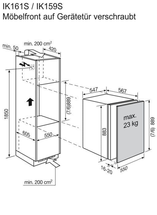 Kühlschrank Einbau Festtür 89 cm E