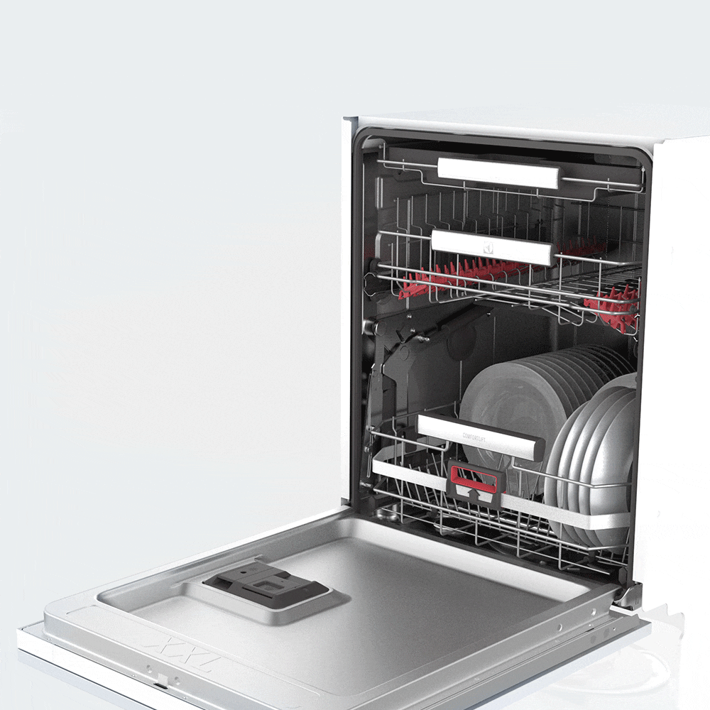 wird selbst dicht eingeräumtes Geschirr gründlich gereinigt.