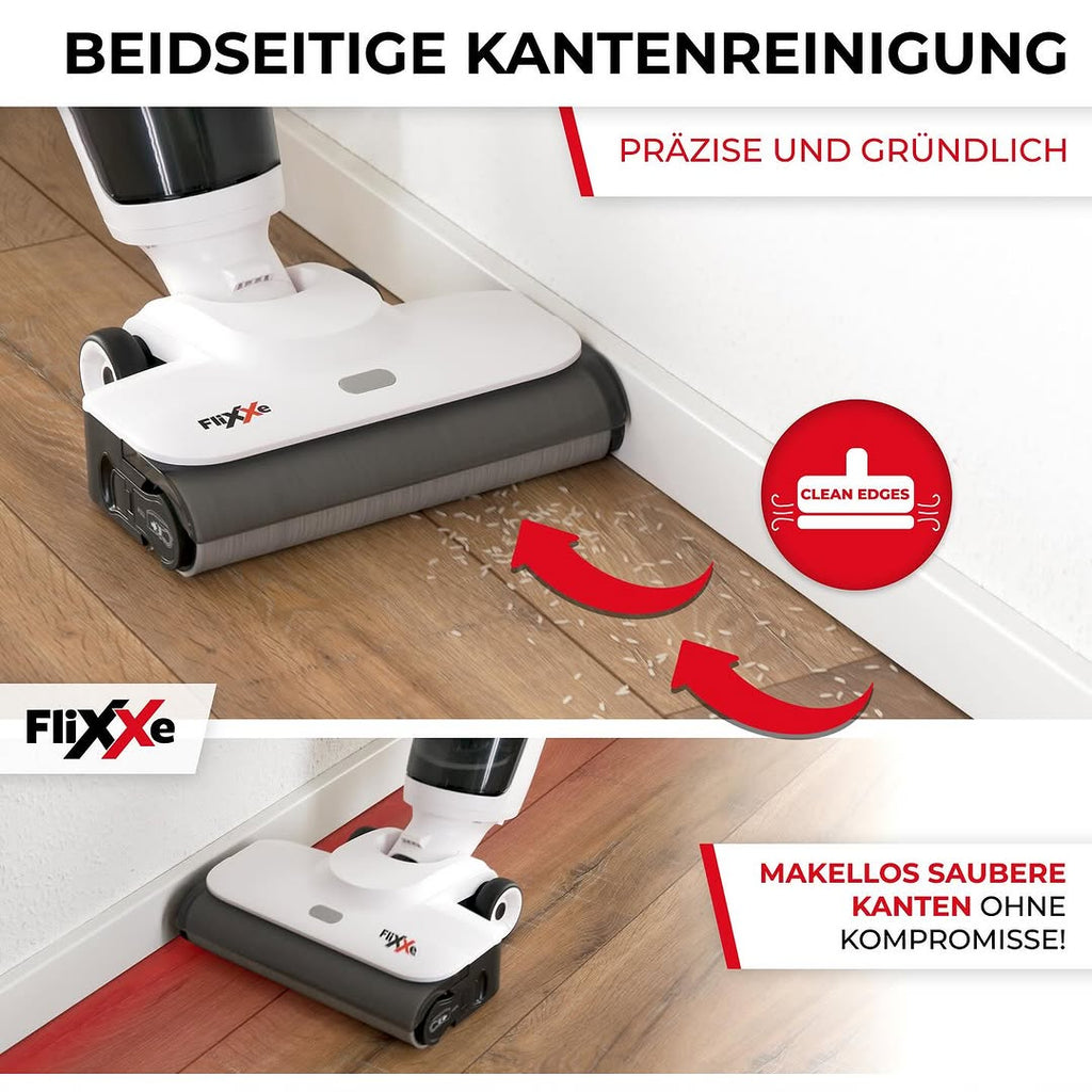 Flixxe 2x2 Squizlle Nass-Trockensauger - kabellos, 150W, 30 Min Laufzeit, LED-Display, Selbstreinigung, X-Sense Technologie, Zwei-Tank-System, Tierhaar-Entfernung, beidseitige Kantenreinigung