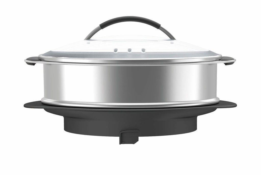 Der Dampfgarkorb XXL Cook Expert mit einer Kapazität von 5.5L, und 8L wenn auf den Cook Expert aufgesetzt. Ein unabdingbares Accessoire für den Cook Expert. Füllen Sie einfach Wasser in den Edelstahl-Topf, setzen Sie die metallene Schüssel ein, die ideal für die Zubereitungen von Saucen ist und füllen Sie Gemüse in das interne Garkörbchen und einen Fisch oder ein Poulet in den XXL-Dampfgarkorb. In wenigen Minuten ist eine ganze Mahlzeit mit der Dampfgarfunktion zubereitet. Ein Sperrmechanismus des Sockels sorgt für eine maximale Stabilität und die isolierenden Griffe aus Silikon am Deckel erlauben eine sichere Handhabung des Cook Experts. Dazu werden ein kleines Rezeptbüchlein und eine Bedienungsanleitung geliefert, die für einen erfolgreichen Gebrauch des Accessoires sorgen.Ein Dampfgarkorb, mit dem Sie gleichzeitig zwei Gerichte im Dampf mit Ihrem Cook Expert zubereiten können.Kapazität 5.5L, mit internem Dampfgarkorb kombiniert 8LKochen Sie Fleisch, Gemüse, Fisch, Reis und vieles mehrKompatibel mit Cook Expert