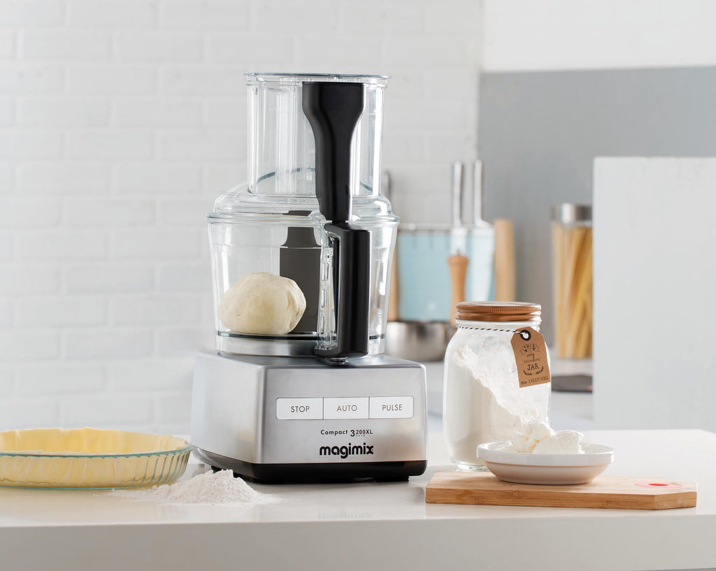 Kein Rezept kann ihm widerstehen! Fachmann für Backwaren und Konditorei!Multifunktional, simpel, professionelle Qualität, langlebig…Die 3200XL ist eine kompakte und leistungsstarke Multifunktions-Küchenmaschine, mit der Sie ganz einfach alltägliche Speisen für die ganze Familie zubereiten können. Reiben, hacken, würfeln, mischen, emulgieren, schlagen, kneten, pressen, extrahieren…. Ausserdem ist die Küchenmaschine ein Experte in Sachen Backen und Konditorei!Bestehend aus 3 ultra-resistenten Schüsseln für alle Ihre Zubereitungen, einem XL-Einfüllschacht zum Einfüllen ganzer Früchte und Gemüse, Präzisionszubehör, Scheiben und Sabatier-Metallmessern.Anzahl Personen: 1-4Kapazität Schüsseln: 2.6 L, 2.2 L, 1.2 LSuppe: 1 LBrotteig: 600 gHefeteig: 500 gMürbeteig: 1 kgKarotten, geriebene Gurke: 800 gFleisch: 750 g5 EiweißInklusive TeigkneterProfi-Motor 650W, die Leistung passt sich automatisch anBereiten Sie ganz einfach alltägliche Mahlzeiten für die ganze Familie zu!Ideal für die Zubereitung von Gerichten für 1 bis 4 Personen. Mit dem Compact System 3200XL können Sie Teig kneten, Eischnee schlagen, Sahne schlagen, Fleisch hacken, Suppen pürieren, Milchshakes zubereiten, Soßen emulgieren, Gemüse hacken und reiben.Die 2,6-Liter-Hauptschale für alle Zubereitungen.Die 2,2-Liter-Midi-Schüssel zum Schneiden und Raspeln von Gemüse.Die Mini-Schüssel von 1,2L für alle kleinen gemischten Zubereitungen.Das 3in1 Schüsselsystem ermöglicht es, viele Gerichte hintereinander zuzubereiten!Der XL-Einfüllschacht ermöglicht es Ihnen, Obst und Gemüse im Ganzen oder in großen Stücken einzufüllen.Alle Zubehörteile sind aus rostfreiem Stahl gefertigt und sorgen für einen perfekten Schnitt.Dank der neuen Hauptschale passen jetzt die Spiral Expert und die Extra Press auf die Küchenmaschine.Alle Magimix Küchenmaschinen werden in Frankreich hergestellt und sind mit ultraleisen Profimotoren mit 30 Jahren Garantie ausgestattet. Auf das Zubehör wird eine Garantie von 3 Jahren gewährt.
