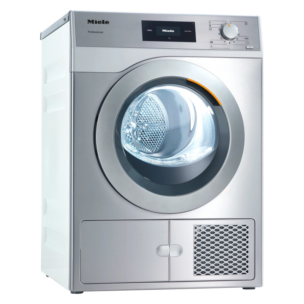Der PDR 508 HP [EL] von Miele ist ein professioneller Wärmepumpentrockner aus der Performance-Serie, speziell entwickelt für energieeffiziente Trocknung bei intensiver Nutzung. Mit einer Kapazität von 8 kg und einem Trommelvolumen von 130 Litern eignet sich der Trockner ideal für gewerbliche Bereiche wie Hotels, Seniorenheime, Wäschereien und vieles mehr. Er überzeugt durch einen 50 % geringeren Energieverbrauch im Vergleich zu Ablufttrocknern und bietet gleichzeitig kurze Programmlaufzeiten von 79 Minuten bei Schranktrocknung. Die PerfectDry-Technologie sorgt für punktgenaue Trocknung, unabhängig vom Textiltyp.