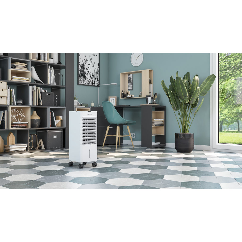 Der Luftkühler Peler 4T von Olimpia Splendid sorgt für angenehme Abkühlung durch Verdunstungskühlung oder kann als klassischer Ventilator genutzt werden.