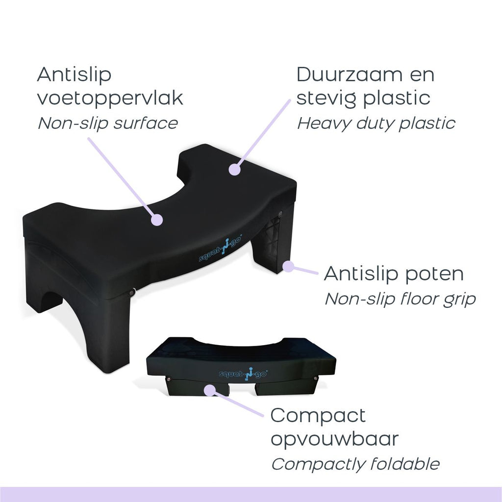 Der Squat-n-Go Toilettenhocker wurde entwickelt, um die natürliche Hockposition beim Toilettengang zu unterstützen – ähnlich wie sie in vielen nichtwestlichen Kulturen üblich ist. Durch das Anheben der Füsse wird der Winkel der Beine optimiert, was den Darm entlastet und den Stuhlgang erleichtern kann. Dies kann helfen, Beschwerden wie Verstopfung, Blähungen oder Hämorrhoiden vorzubeugen. Der Hocker besteht aus robustem, langlebigem Material und eignet sich für den täglichen Gebrauch. Dank seines kompakten, klappbaren Designs lässt er sich platzsparend um die Toilette positionieren oder bei Nichtgebrauch einfach verstauen. Rutschfeste Standflächen sorgen dabei jederzeit für Stabilität und Sicherheit – für mehr Komfort und Wohlbefinden im Alltag.