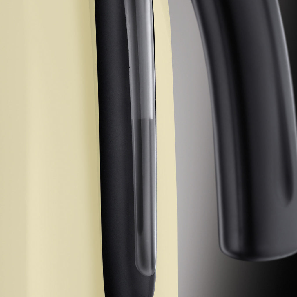 Die Colours Plus+ Classic Cream Frühstücksserie besticht durch ihr Design in hochwertig lackiertem cremefarbenen Edelstahl. Eine Frühstücksserie von Freundlichkeit, die jede Küche aufhellt. Der Wasserkocher verfügt über eine Schnellkochfunktion für 1, 2 oder 3 Tassen, die das Aufkochen einer Tasse (235 ml) in nur 50 Sekunden ermöglicht und spart dabei bis zu 70% Energie*. Darüber hinaus verfügt der Colours Plus+ Wasserkocher über einen verriegelbaren Sicherheitsdeckel und sorgt mit seinen 2.400 Watt für extra schnelle Erhitzung.