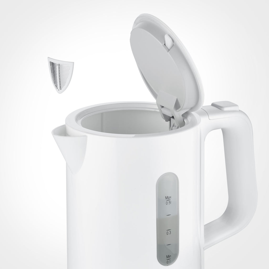 Der Wasserkocher ist mit einem herausnehmbaren und abwaschbaren Kalkfilter ausgestattet, der für eine lange Lebensdauer des Geräts sorgt. Zusätzlich sind 2 Kunststofftassen mit Löffeln im Lieferumfang enthalten, damit man direkt loslegen kann.